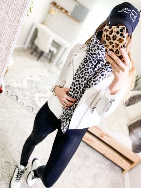 - Mix and match the leggings and white top of choice and add some Converse or white sneaks of choice to run any and every errand you can think of. Tie a flannel around your waist if you are feeling sassy.