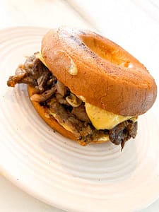 I’m just going to come out and say it….my toxic trait is that I LOVE McDonald’s. Not even like in a way that everyone loves McD’s. Like, my husband, had it delivered for my birthday morning, I grab double cheese-ies by the 6 count, and don’t even get me started on chicken nuggets and hot mustard!!! I spend 99% of my time being absolutely annoying about what we are eating/putting into our bodies, staying away from processed foods when we can help it, weighing my food, counting macros, and the other 1% just waiting on my next Mc’D’s meal. I have no in-between. As we like to say around this house “you like what you liiiiiike”. Wellll I LOVE me a steak and cheese bagel and considered having a total meltdown when they took them off the menu only to be sad and jealous that they brought them back to the east coast nowhere NEAR me. Is Philly too far to fly from Dallas for a sandwich……asking for a friend?!?! The amount of time I have spent researching recipes and trying to recreate this sandwich should be embarrassing to me…but it just isn’t. I might actually be more excited about this version because I got to make it gluten-free, know exactly what went into cooking all of the ingredients since I did it myself, and I didn’t have to order it with “NO EGG” only to get said egg that then holds my melted cheese hostage and hurts my feelings when I have to hand it over to my husband. Like all things in life….this isn’t going to taste EXACTLY the same as McD’s, but it’s clooooose and now….you can make it yo’self.