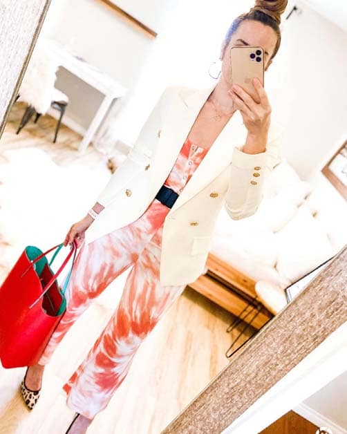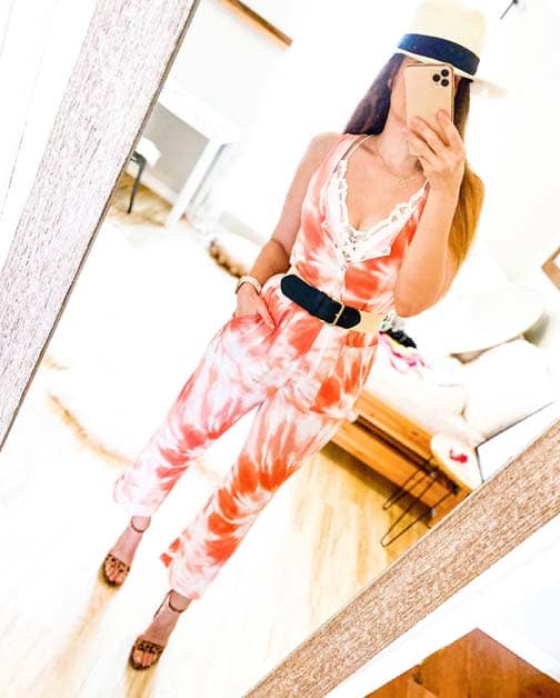 Definitely more proud of PaGLAMas than I should be….buuuut here we are. These are $17 overall pajamas I grabbed because I can’t let tie-dye DIE and I have never met a one-piece that I didn’t like or prefer to any sort of real clothing. It also happens to have snaps which made it a snapping, cheap, tie-dye, one-piece….triple threat or quadruple threat?! Anyway, I wanted it but wanted to make sure I could do more things with it than wear it to bed or around the house because my 2020 loungewear closet is RESPECTABLE and I need a justification to add to cart……….