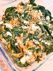 - Use FRESH spinach only. We alllllll know you got a bag of it with your groceries you have zero intentions of eating and will throw it away at the end of the week when it finally gets slimy. CT calls for frozen spinach that is rung out, and I made it this way, and I HATE ringing out spinach. I never do it enough, so everything stays watery, frozen spinach gets stuck to EVERYTHING, and I find it in the sink, on every dish, in the washer…you name it, and it takes me forever to figure out how it got there and how to get rid of it. ALSO the fresh IMO just tastes so much better and saves so much time