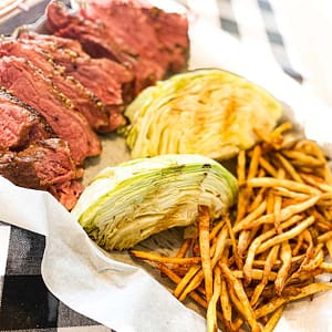 9. Serve with grilled cabbage and air fryer fries for food coma heaven