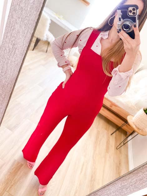 I bought zero new things to style this with and not one piece I have on (other than the pink satin shoes of course) was over $25. Catch me this spring/summer swapping out the jeans for shorts in blue and white, heels for sandals, and skirts for red pants!